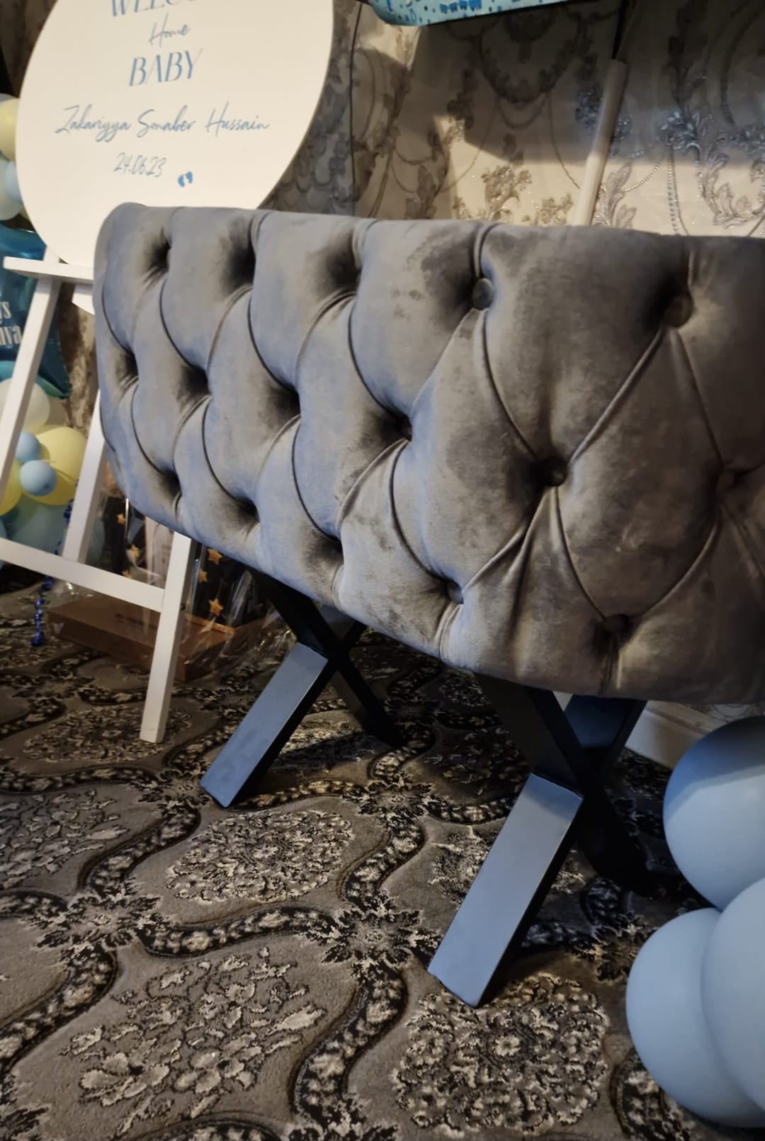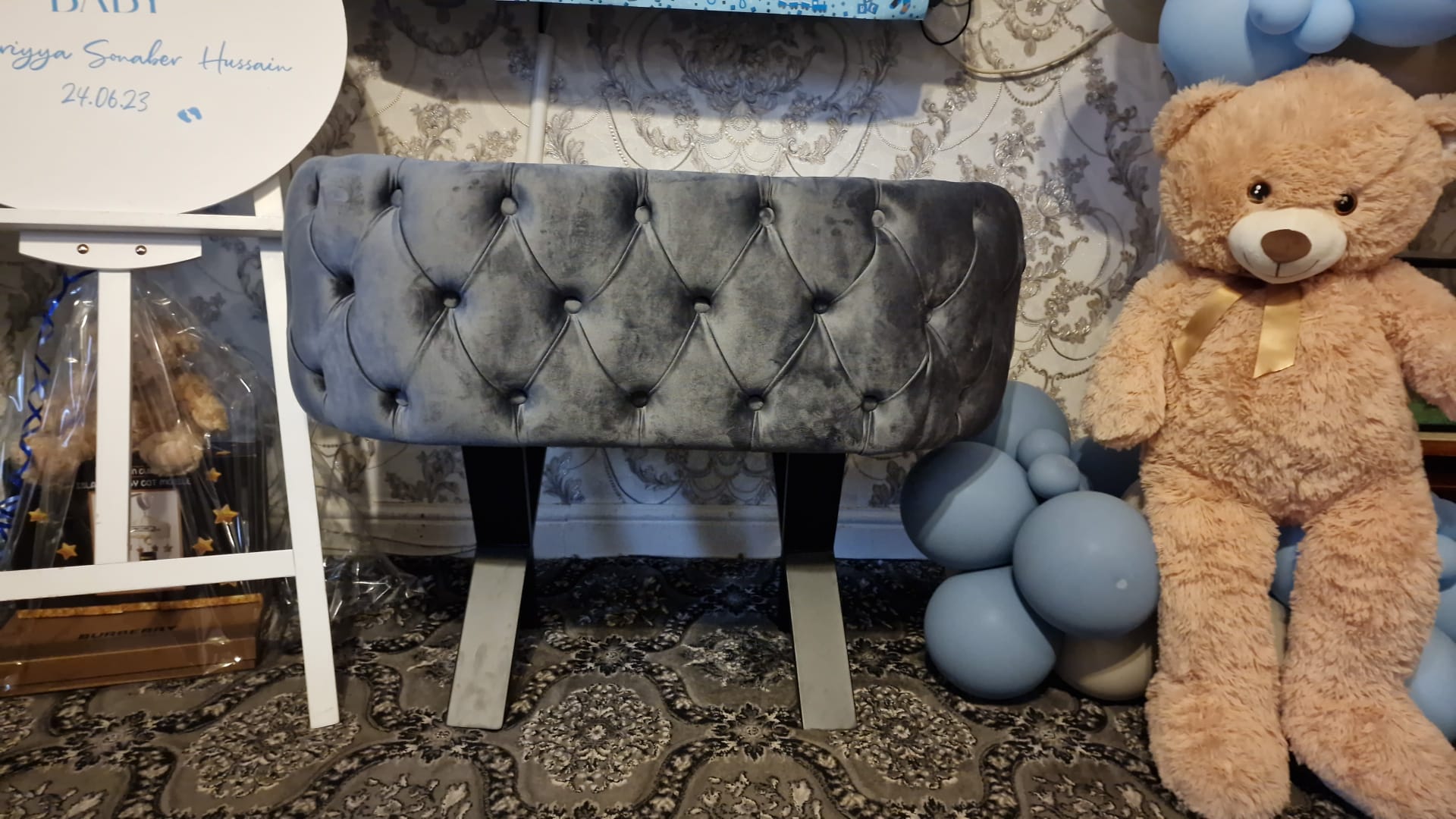 This bassinet would fit in seamlessly and also brings an attractive pop of colour too. The buttoned details adds a further luxurious and stylish dimension