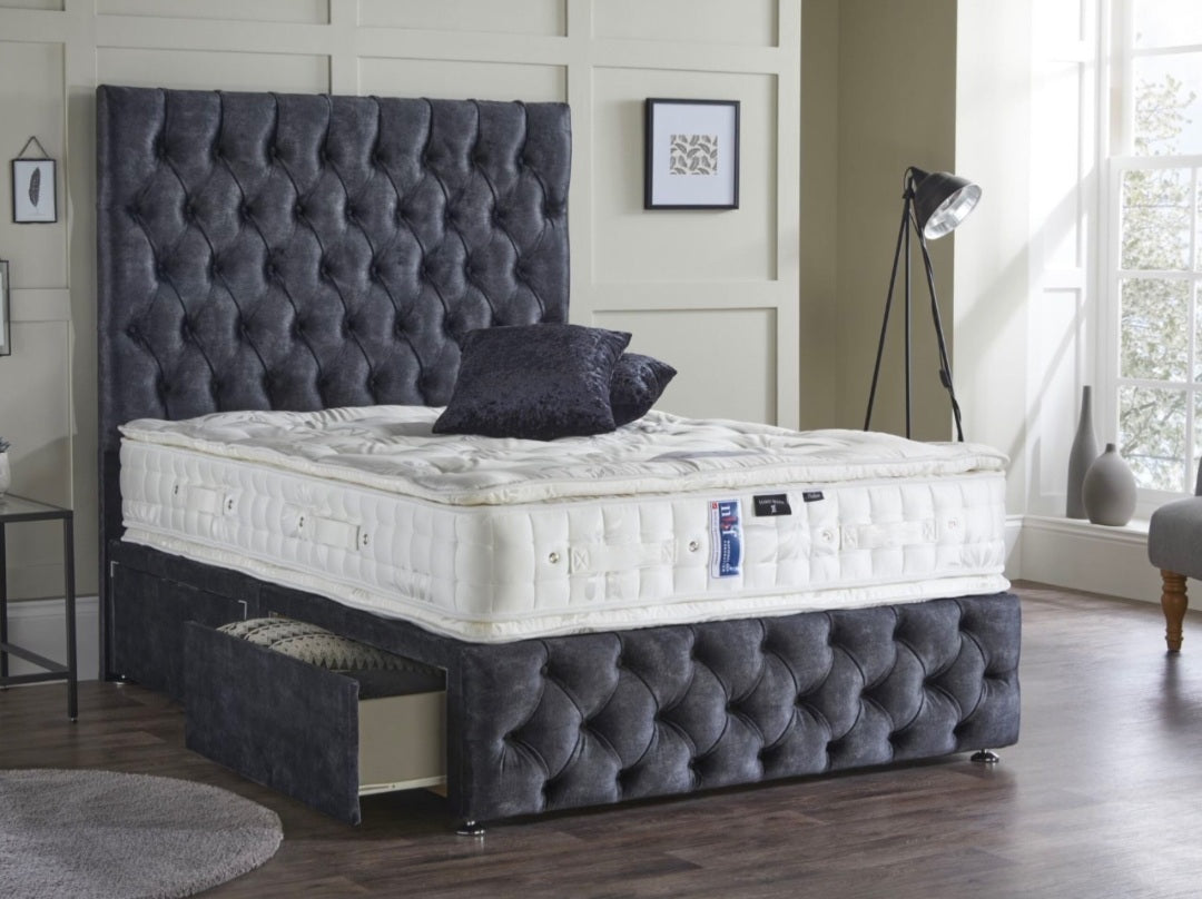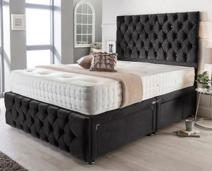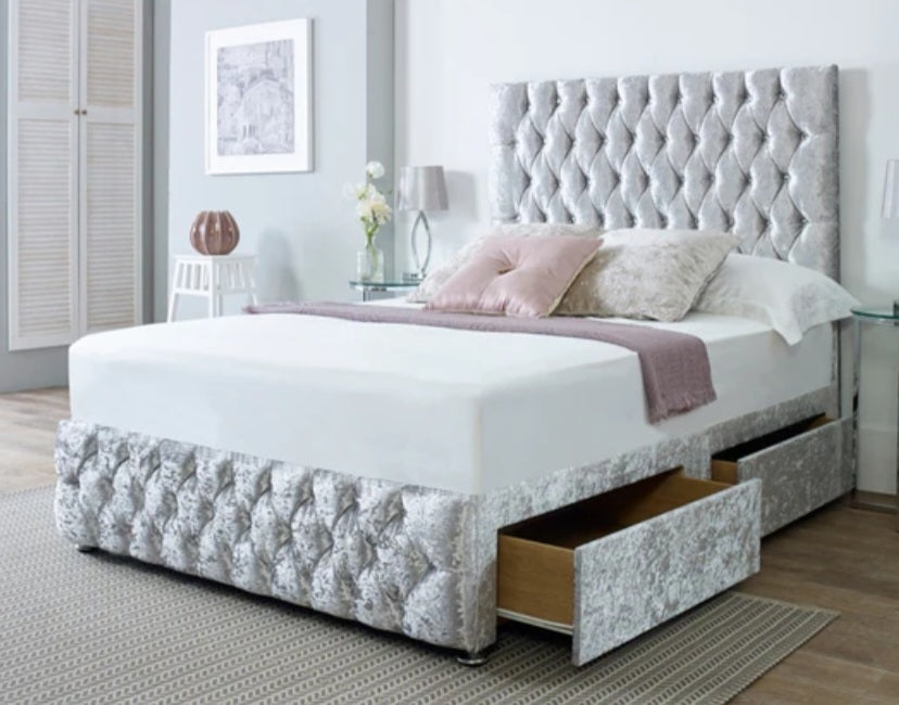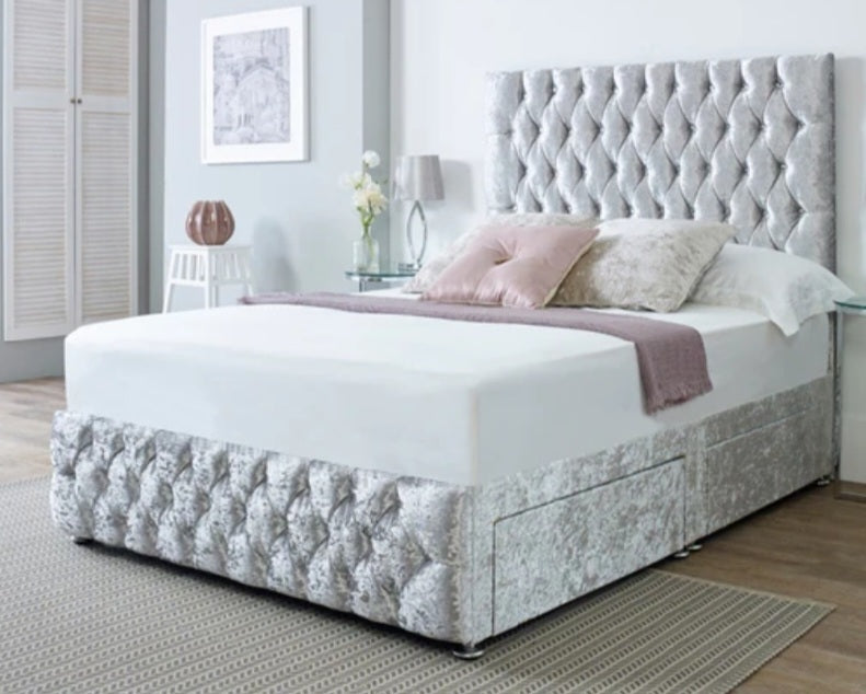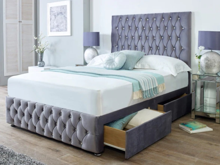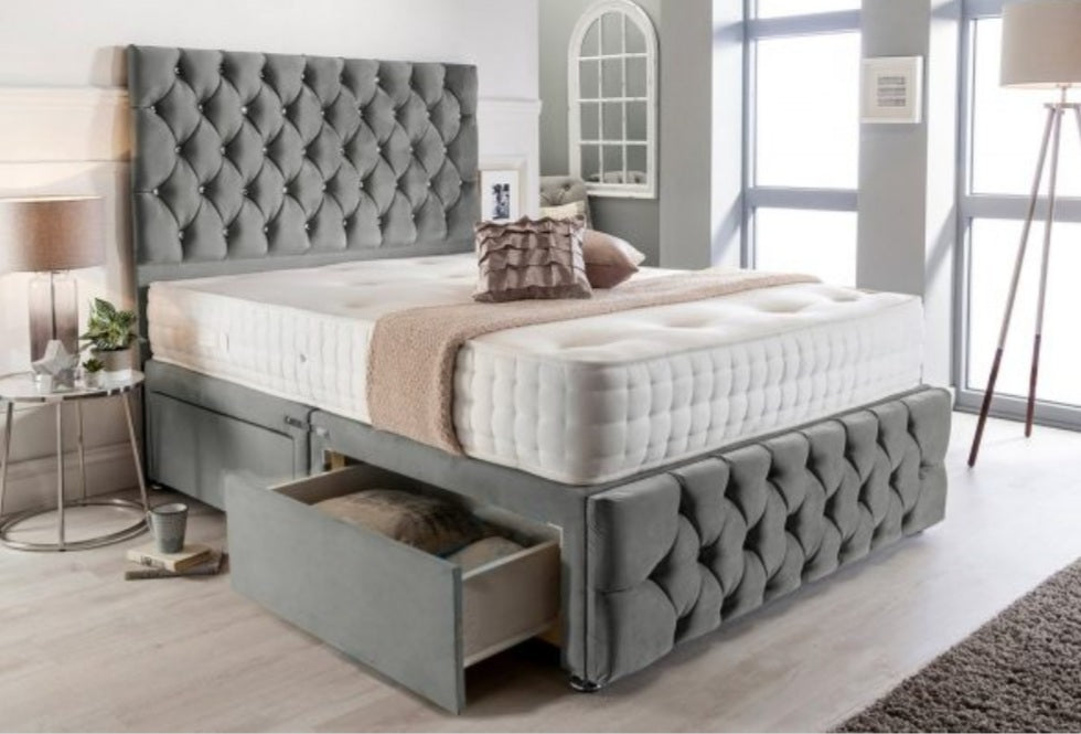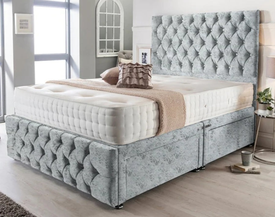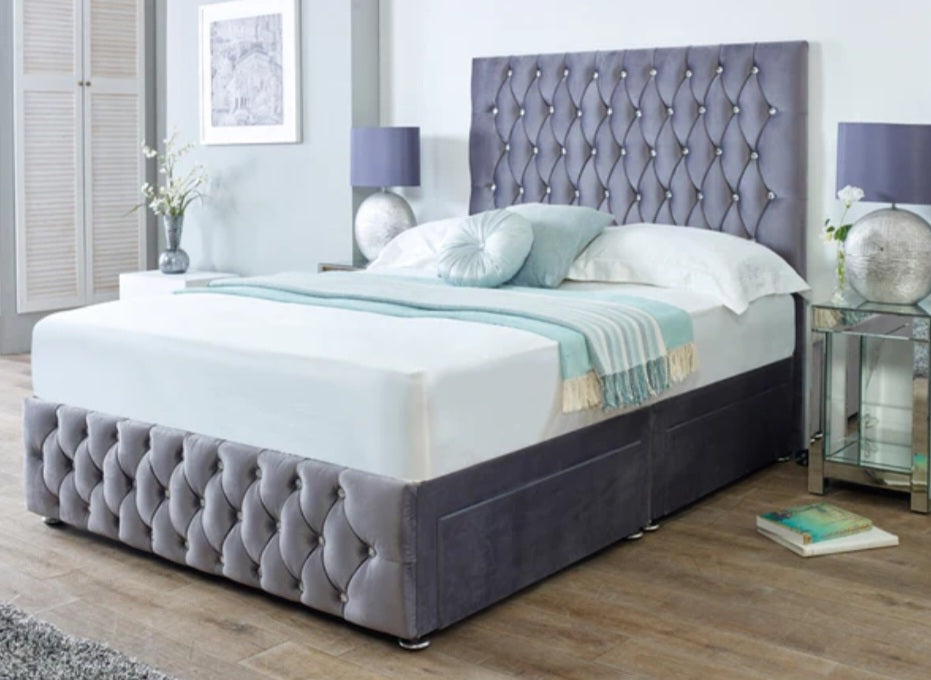 • Headboard and foot board with diamantes or button