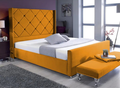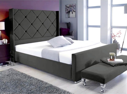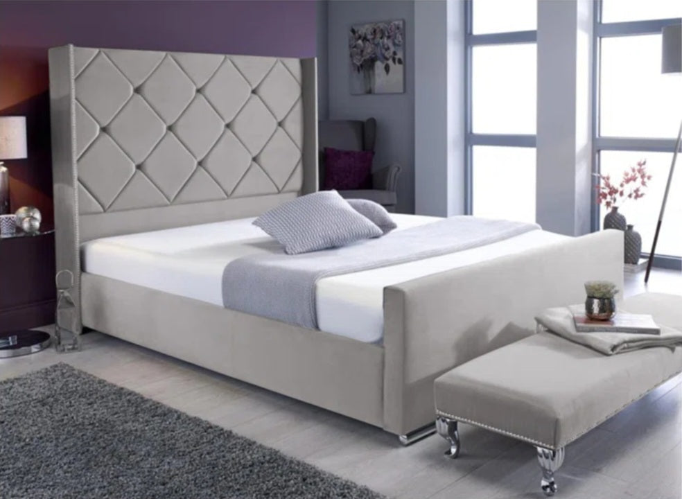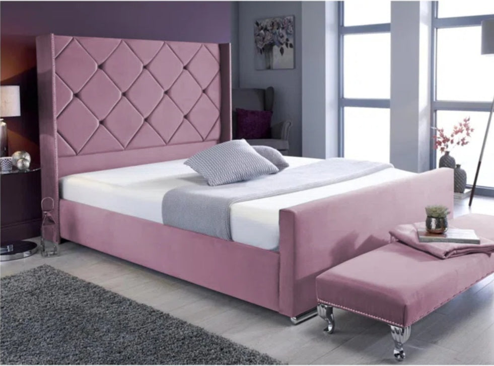 The Hybrid beds comes with wings, supported by a chesterfield design padded headboard. The padded headboard is part of our chesterfield range that are amongst the most popular beds at the moment.